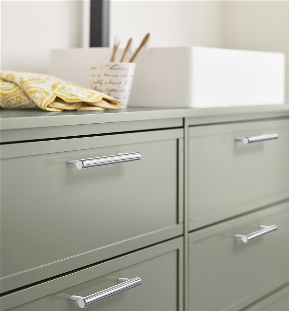The subtle knurling of the Bronx collection adds a sophisticated and modern industrial twist to the traditional bar pull, certain to add designer flair to any space.