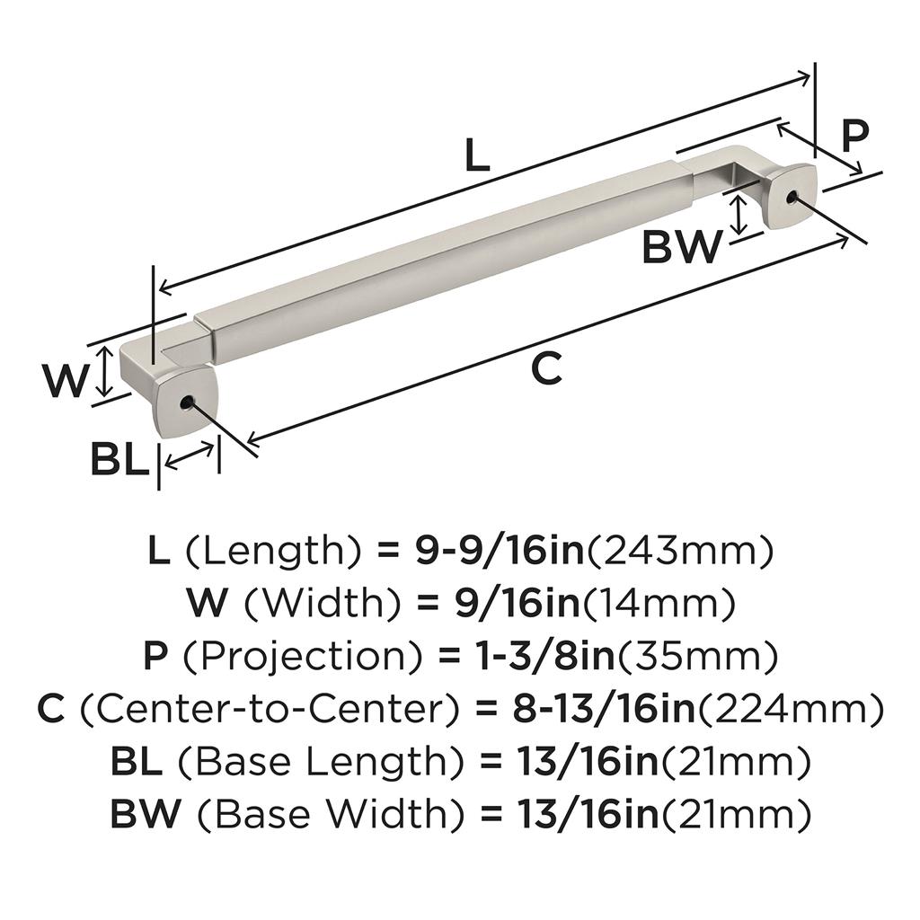 The Amerock Stature 8-13/16 inch (224mm) Center-to-Center Pull.