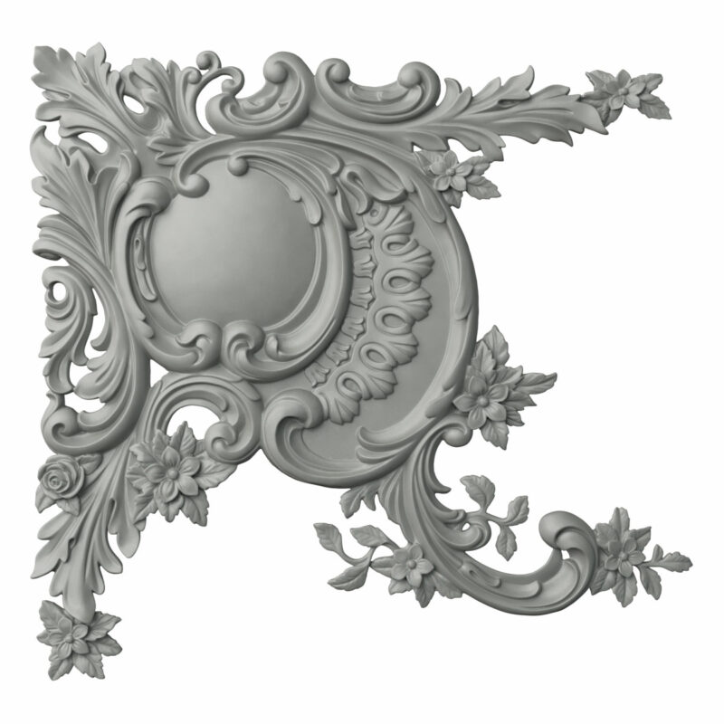 Our appliques and onlays are the perfect accent pieces to cabinetry, furniture, fireplace mantels, ceilings, and more. Each pattern is carefully crafted after traditional and historical designs. Each polyurethane piece is easily installed, just like wood pieces, with simple glues and finish nails. Another benefit of polyurethane is it will not rot or crack, or warp. It comes to you factory primed and ready for your paint, faux finish, gel stain, marbleizing and more.