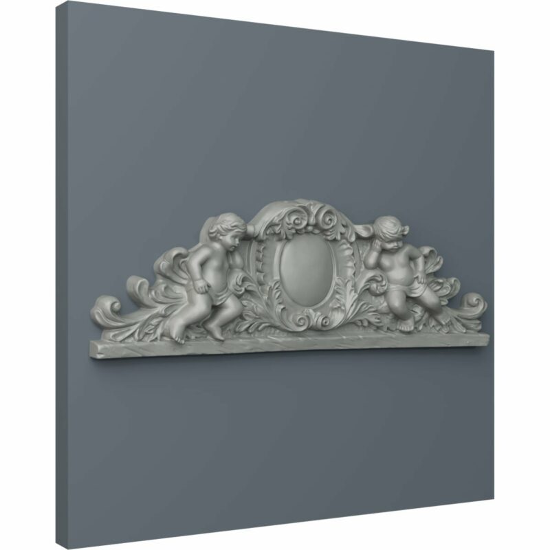 Endurathane Scroll Angel Center with Scrolls, 28 1/2″W x 9 5/8″H x 2 3/4″P, Factory Primed