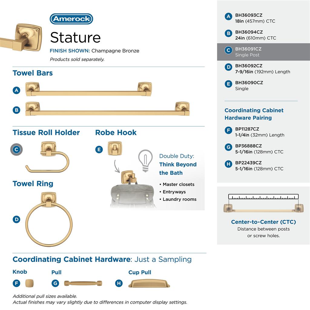 Complete the look with matching cabinet knobs, drawer pulls and bath hardware from the Amerock Stature collection